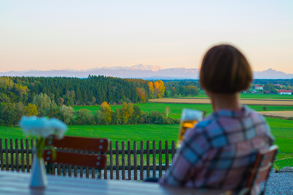 An sonnigen Tagen lädt unser Biergarten mit 250 Sitzplätzen dazu ein, das schöne Wetter und den Blick auf die Alpen zu genießen.
